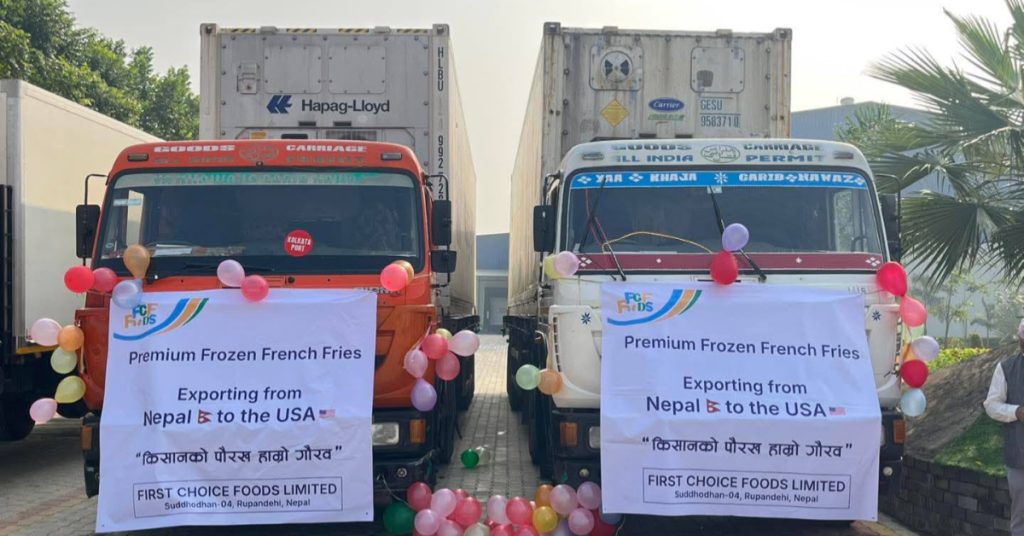 रुपन्देहीको शुद्धोधनस्थित फस्ट च्वाइस फुड्स प्रालिले उत्पादन गरेको फ्रेन्च फ्राइज पहिलो पटक अमेरिका निर्यात गर्न थालेको छ। ‘हिमालयन क्रिस्प’ र ‘हाम्रो फ्राइज’ ब्रान्डका फ्रेन्च फ्राइज अमेरिकातर्फ पठाइएको हो।